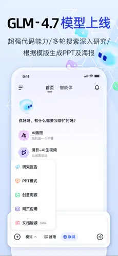智谱清言帮你“聪明一点”,每天少工作一小时。基于中英双语大模型ChatGLM开发,具备以下丰富的能力: 【通用问答】 能回答各类问题,涵盖众多领域,您的智能AI助手。